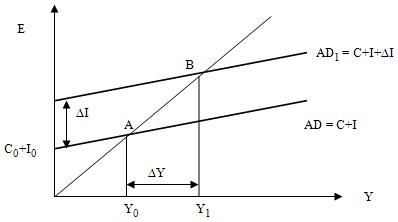 1. Государство и внешний мир отсутствуют, тогда совокупные расходы состоят лишь из потребления и инвестиций (E = C + I).