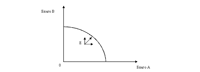 Точка Е есть результат неполного использования производственных ресурсов. В точке Е имеется резерв ресурсов для одновременного наращивания производства товара А и В. И опять возникает проблема выбора оптимального варианта.