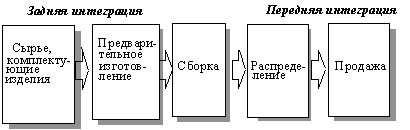Вертикальная интеграция может осуществляться в прямом и обратном направлениях (рис.10.2). Обратная интеграция (задняя интеграция) осуществляется в направлении контроля над поставками сырья и нацелена на закрепление поставщиков, поставляющих продукцию по более низким ценам, чем у конкурентов.