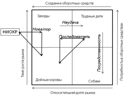 Звезды представляют собой высококонкурентный бизнес на быстрорастущих рынках, что соответствует идеальному положению. Основная проблема звезд связана с определением правильного баланса между доходом и инвестициями. Дойные коровы - это высококонкурентный бизнес на зрелых рынках. Данные СЗХ являются источником наличности для компании: «дойные коровы» – это «звезды» в прошлом, которые в настоящее время обеспечивают организации достаточную прибыль. Поток денежной наличности в этих позициях сбалансирован, поскольку для инвестиций в СЗХ требуется самый необходимый минимум. Трудные дети (знаки вопроса, дикие кошки) представляют собой СЗХ, конкурирующие на растущих рынках, но занимающие относительно небольшую долю рынка, что приводит к необходимости увеличения инвестиций с целью защиты доли рынка и гарантирования выживания на нем. Таким образом, СЗХ являются потребителями денежной наличности, пока не изменится их рыночная доля. Собаки представляют собой сочетание слабых конкурентных позиций с рынками, находящимися в состоянии застоя. Поток денежной наличности в областях бизнеса обычно очень незначительный, а чаще даже отрицательный.