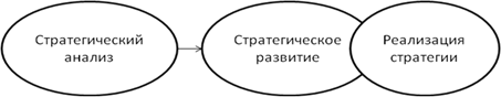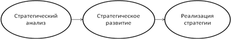 Реализованная стратегия должна быть одновременно активной и адаптивной. В связи с этим процесс реализации стратегии отличается от процесса выполнения долгосрочного плана. Процесс реализации стратегии это не только начало выполнения принятой стратегии (рис.14.2), но и старт процесса создания будущей стратегии (рис.14.3). В процессе реализации стратегии через обратную связь поступает информация о результатах и запускается механизм их осмысления (процесс стратегической рефлексии).
