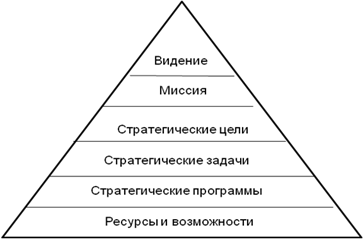 В основании пирамиды лежат ресурсы и способности, необходимые для достижения целей организации, реализации стратегии и для выполнения отдельных программ и проектов.