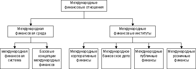 «Международная финансовая среда» подразумевает рассмотрение международной финансовой системы, включая анализ валютного устройства мира, финансовых рынков, институтов и т.д., а так же базовые концепции в международных финансах. В свою очередь, методы оценки перспектив развития финансовой среды обусловливают реакции экономических институтов на внешние импульсы, т.е. лежат в основе их финансовых решений, характеризуемых второй группой, так называемых «финансовых институтов».