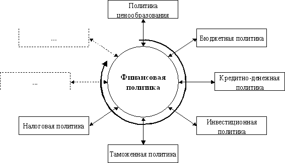 Финансовая политика является частью общей экономической политики. Составляющие финансовой политики, как на уровне отдельных организация, так и на уровне государства отображены на рисунке 1.