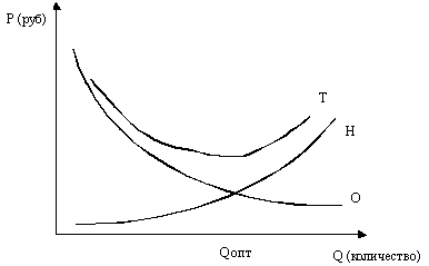 1. Модель экономически обоснованной потребности в запасах (EOQ). Математическая модель EOQ определяет оптимальный объем запасов исходя из цели минимизации затрат на их приобретение и хранение при удовлетворении прогнозируемого спроса на эти товары. Эти затраты варьируются в зависимости от заказанного количества так, как показано на рисунке 3.