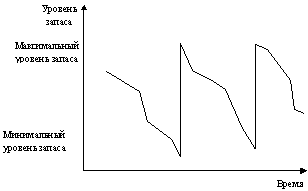 8. Модель «Минимум — Максимум» работает следующим образом: контроль за уровнем запасов делается периодически, и если при проверке оказалось, что уровень запасов меньше или равен пороговому уровню, то делается заказ.