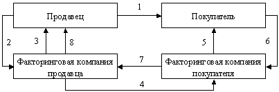 4. — факторинговая компания продавца переуступает дебиторскую задолженность факторинговой компания покупателя;