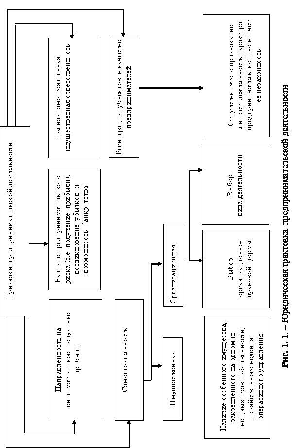 В современной экономической литературе в большинстве случаев сущность этого явления подменяется целью предпринимательской деятельности. Так, например, в «Большом экономическом словаре» под общей редакцией А. Н. Азрилияна дается следующее определение: «Предпринимательство – инициативная самостоятельная деятельность граждан, направленная на получение прибыли или личного дохода, осуществляемая от своего имени, под свою имущественную ответственность или от имени и под юридическую ответственность юридического лица»[19]. В учебниках предпринимательство определяется как непосредственная, самостоятельная, систематическая, на собственный риск деятельность по выполнению работ, оказанию услуг с целью получения прибыли, которая осуществляется физическими и юридическими лицами, зарегистрированными, как субъекты предпринимательской деятельности в порядке, установленном законодательством. Именно этот подход, в России закреплен законодательно[20]. Согласно современному российскому законодательству, под предпринимательской деятельностью понимается «самостоятельная, осуществляемая на свой риск деятельность, направленная на систематическое получение прибыли от пользования имуществом – продажи товаров, выполнения работ или оказания услуг, лицами, зарегистрированными в этом качестве в установленном законом порядке»[21] (Рис. 1.1).