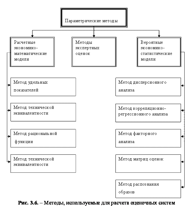 Учитывая то обстоятельство, что исходная информация представляет собой множество объектов экономического анализа (а именно: субъектов предпринимательской деятельности регионального ИСК), а также набор характеризующих их разнообразных показателей (экономических и статистических параметров, предоставляемых или выдвигаемых условий сделок, уровня притязаний и услуг, репутации в ИСК и т. п.), подчеркнем, что речь может идти о так называемых параметрических методах экономико-математического анализа, которые в общем виде имеют следующую структуру (Рис. 3.6).