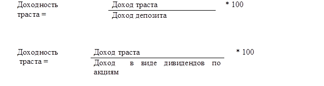 При сравнительном определении доходности трастовых операций можно воспользоваться формулами.