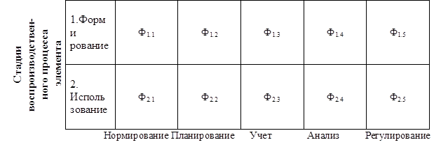 3) по фазам в пределах элемента – основные специализированные функции управления. Выделяются по содержательной стороне одноименной фазы управленческого цикла в пределах стадий воспроизводственного процесса элемента (контура). Например, специализированные функции Ф1.1, Ф2.1 образуют «нормирование денежных средств (ценных бумаг)» или Ф1.2, Ф2.2 – «планирование денежных средств (ценных бумаг)»;