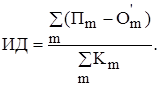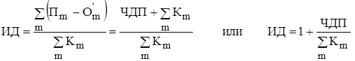 Индекс доходности инвестиций (ИД) - отношение суммы элементов денежного потока от операционной деятельности к абсолютной величине суммы элементов денежного потока от инвестиционной деятельности. Он равен увеличенному на единицу отношению ЧДП к накопленному объему инвестиций.