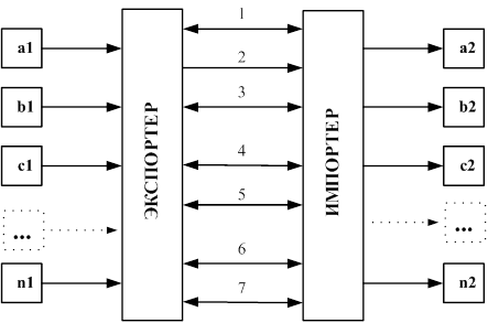 Рис. 10.3. Основные внешнеторговые операции зарубежных производителей и потребителей продукции, проходящей через экспортные и импортные фирмы