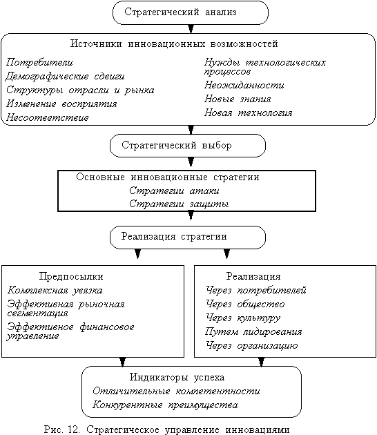 Как известно [5], идентификация или определение стратегии - лишь начальный этап стратегического менеджмента. В целом стратегический менеджмент инноваций может быть представлен схемой на рис. 12.