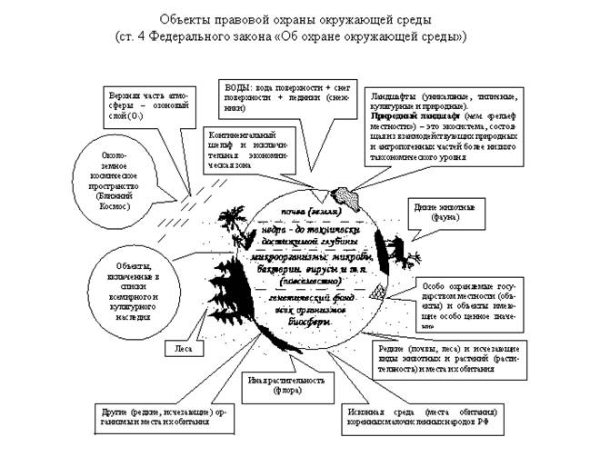 Объектами экологического права является то, по поводу чего совершается правовое регулирование. Федеральный закон «Об охране окружающей среды» относит к объектам охраны окружающей среды: