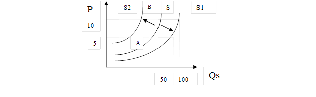 Неценовые факторы приводят к изменению самого предложения и графически отображаются перемещением всей кривой предложения.