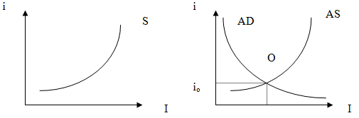Пересечение кривых AD и AS дает уровень рыночной процентной ставки (io).