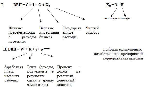Основным макроэкономическим показателем изучения производства и потребления национального продукта является валовой внутренний продукт (ВВП). (ВВП) – стоимость всех конечных товаров и услуг, произведенных в стране за определенный период времени (обычно за год), факторами производства, находящихся в собственности граждан и иностранцев.