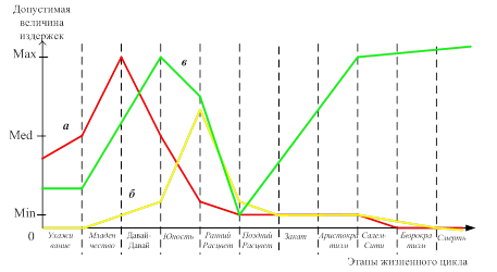 Согласно данной модели, каждая организация проходит в своем развитии следующие этапы: Ухаживание, Младенчество, Давай-Давай, Юность, Расцвет (может подразделяться на ранний и поздний), Закат, Аристократизм, Салем-Сити, Бюрократизм, Смерть [1]. Данные стадии вполне могут быть применимы к характеристике жизненного цикла вуза с поправкой на основную направленность его деятельности – предоставление образовательных услуг в качестве смешанного блага (приложение 4).