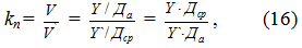 где kn — коэффициент плотности взаимосвязи отраслей общественного производства; V — фактическая скорость оборота денег; V` — общественно необходимая величина скорости оборота денег; Y — фактический выпуск или валовой общественный продукт; Да — активная масса денег в обращении; Y` — общественно необходимая величина выпуска или валового общественного продукта; Дср — общественно (объективно) необходимая активная масса денег в обращении.