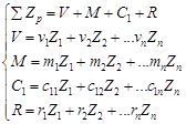 Расшифруем символы в данной таблице: Р — обозначает отрасли; Х — выпуск продукции отрасли; У — промежуточный продукт; Z — конечный продукт; а — коэффициент поставки; b — коэффициент потребления; V — оплата труда; M — прибыль; С1 — амортизационные отчисления; R — налоги, υ — коэффициент оплаты труда; m — коэффициент прибыли; c1n — коэффициент амортизационного отчисления; k — коэффициент приведения индивидуальных затрат к общественно необходимым величинам; Х' — общественно необходимая величина выпуска продукта; ∑ — сумма; ∆ — дополнительные доходы за счет платежей и других источников.