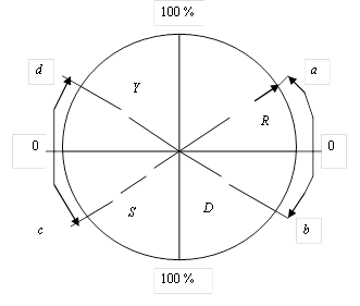 Рис. 28. Модель взаимосвязи изменений величин налога (R), совокупного спроса (D), предложения (S) и национального дохода (Y).