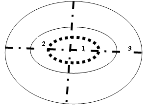 Рис. 51. Модель структуры экологической безопасности: взаимосвязь экономической (1), социальной (2) и экологической (3) безопасностей