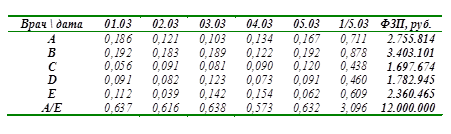 - если рост доходности не сопровождается падением незанятости врача, то это свидетельствует о росте эффективности его работы как штатной единицы для фирмы;