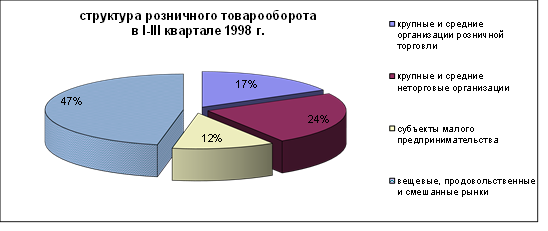 Заметное опережение объема розничного товарооборота в Москве обусловлено концентрацией там мелкооптовой торговли, обеспечивающей не только москвичей, но и "челноков" из других регионов. При этом самые высокие темпы роста розничной торговли в 1990-х гг. тоже наблюдались в Москве. Довольно значительное сокращение розничной торговли отмечается в северокавказских республиках и в ряде регионов европейской части страны (традиционно ориентированных на внутренний рынок).
