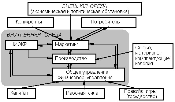 должны учитываться и внутренняя среда фирмы, и внешняя. Все многообразие внутренней