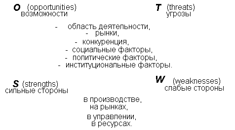 а также SWOT-анализом (оценкой внешних и внутренних факторов деятельности фирмы)