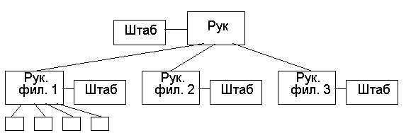 Дивизиональная (филиальная структура) изображена на рис.17. Дивизионы (филиалы) выделяются или по области деятельности или географически.