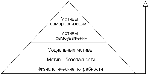 Под мотивом понимают побуждение человеческого поведения, базирующееся на субъективных ощущениях недостатков или личных стимулов. Мотивы человеческого поведения имеют определенную иерархию (она обычно называется "пирамидой Маслоу") - рис. 21.