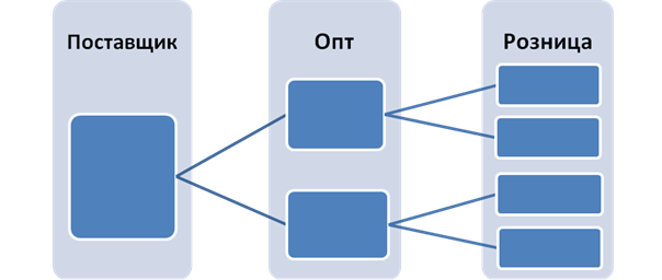 в сети товародвижения. Каждый участник сети сам определяет условия и цены на свои