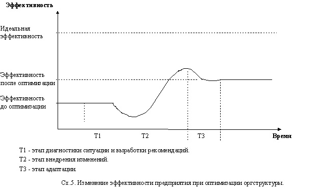 В общем случае оптимизация организационной структуры изменяет эффективность предприятия следующим образом: