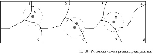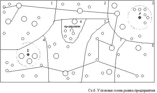 Для рассмотрения некоторых существенных аспектов сбыта воспользуемся следующей условной схемой рынка предприятия: