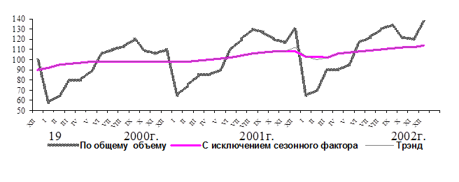 в % к декабрю 1998 г. (данные ГОСКОМСТАТА)