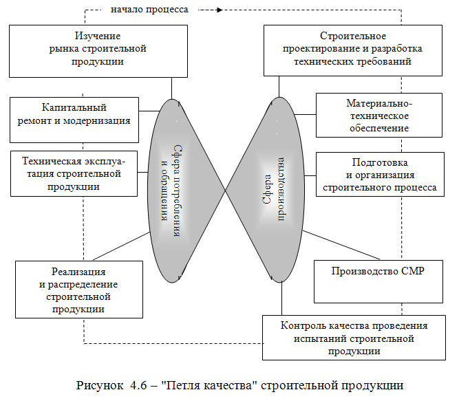 В соответствии с международными стандартами "жизненный цикл" продукции состоит из 11 этапов (так называемая петля качества) [4] (см. рис.4.6). Применительно к объекту данного исследования можно выделить девять укрупненных структурных элементов "жизненного цикла" строительной продукции (Представленная на рис. схема позволяет сделать ряд выводов).