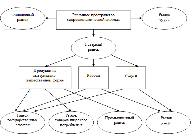 Первичным элементом этой структуры является товарный рынок. На нем представлена продукция, имеющая материально-вещественную форму; работы; услуги, а также плоды интеллектуальной деятельности (например, в форме технической или проектной документации, научно-методических публикаций). Товарный рынок обладает высокой емкостью и в значительной мере определяет условия развития других рынков.