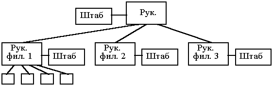 Дивизиональная (филиальная) структура изображена на рис.8.7. Дивизионы (филиалы) выделяются или по области деятельности, или географически.
