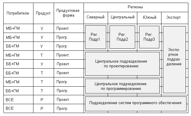 или дальнейшее разделение по регионам, или развитие организации с продуктовыми