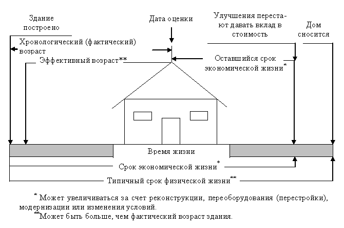 Жизненный цикл объекта недвижимости подчиняется определенным закономерностям[11] и включает срок экономической и физической жизни (рис. 1.7):