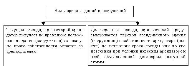 В зависимости от того, предусмотрен ли условиями аренды переход права собственности на здание (сооружение) к арендатору по истечении срока аренды или до его истечения, аренду коммерческой недвижимости подразделяют на текущую или долгосрочную (рис. 2.2).