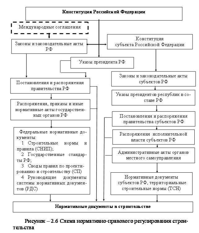 В соответствии с ростом объёма подрядных торгов совершенствуется законодательная база. Схема нормативно-правового регулирования в строительной сфере представлена на рисунке 2.6.