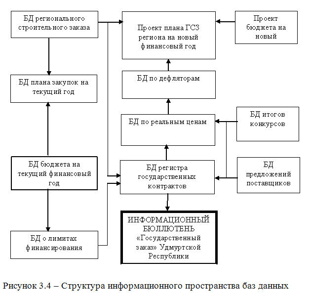Представленные на рисунке 3.5 БД «Подготовка и результаты проведения конкурсов» и БД «Предложения поставщиков для участия в конкурсе» представляют собой новые объекты АСПУ, создаваемые в едином информационном пространстве городского заказа.