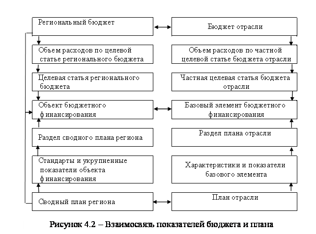 В методическом аспекте прежде всего важно обеспечить взаимосвязь бюджета и плана. Это достигается совпадением объектов планирования и бюджетного финансирования. Основные зависимости, возникающие при этом, представлены на рисунке 4.2.