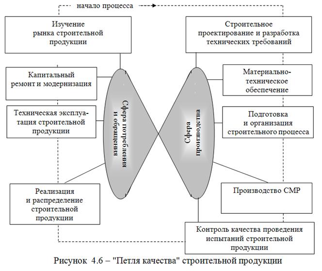В соответствии с международными стандартами "жизненный цикл" продукции состоит из 11 этапов (так называемая петля качества) [4] (см. рис.4.6). Применительно к объекту данного исследования можно выделить девять укрупненных структурных элементов "жизненного цикла" строительной продукции (Представленная на рис. схема позволяет сделать ряд выводов).