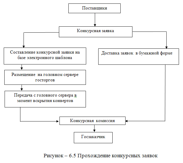 Поставщик находит на головном сервере торгов извещение о конкурсе, знакомится с конкурсной документацией, заполняет шаблон конкурсной заявки и передает сформированную заявку на головной сервер. Головной сервер проверяет корректность заполнения заявки и высылает поставщику либо диагностическое сообщение, объясняющее причину отклонения заявки, либо квитанцию, подтверждающую принятие заявки для участия в конкурсе. В последнем случае головной сервер, кроме того, высылает заказчику уведомление о поступлении очередной заявки.