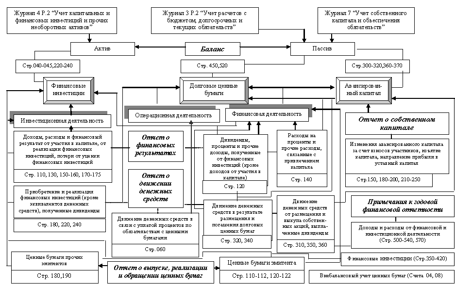 Поскольку целью бухгалтерского учета и составления финансовой отчетности является предоставление пользователям информации о финансовом состоянии, результатах деятельности и движении денежных средств компании с целью принятия управленческих решений, то учет ценных бумаг, как объекта деятельности компании (операционной, инвестиционной и финансовой), должен проводиться в разрезе учета доходов, расходов, финансовых результатов и движения денежных средств. Ценные бумаги являются объектом операционной деятельности лишь для организаций – торговцев ценными бумагами, т.е. для профессиональных участников рынка ценных бумаг (кроме уплаты процентов по долговым ценным бумагам). Для всех других компаний операции с ценными бумагами являются инвестиционной или финансовой деятельностью, которая соответствующим образом отражается в финансовой отчетности.