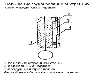 Компромиссными решениями могут служить несгораемые конструкции однослойных наружных стен из блоков ячеистого бетона плотностью 600-700 кг/м3 класса по прочности на сжатие В2, 5-ВЗ,5, либо трехслойные панели с наружными слоями из легкого бетона плотностью 1200 кг/м3 толщиной по 100 мм с утеплителем из пенополистирола или минераловатных плит с коэффициентом теплопроводности порядка 0,06-0,04 Вт/м °С. Поскольку звукоизоляция внутренних стен и перекрытий в домах «первого поколения» ниже требуемой современными нормами, при проведении реконструкции предусматривают меры по повышению индекса изоляции воздушного шума межквартирных стен и индексов изоляции ударного и воздушного шума между этажными перекрытиями. Для повышения изоляции стен прибегают к односторонней облицовке гипсокартонными плитами на относе с заполнением воздушной прослойки звукопоглощающими материалами, а для междуэтажных перекрытий – к замене акустически однородной конструкции слоистым полом (Рис.5.5.).